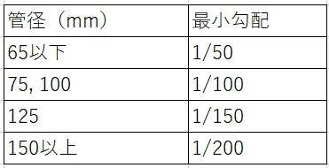 排水横枝管の勾配は以下のとおりです。